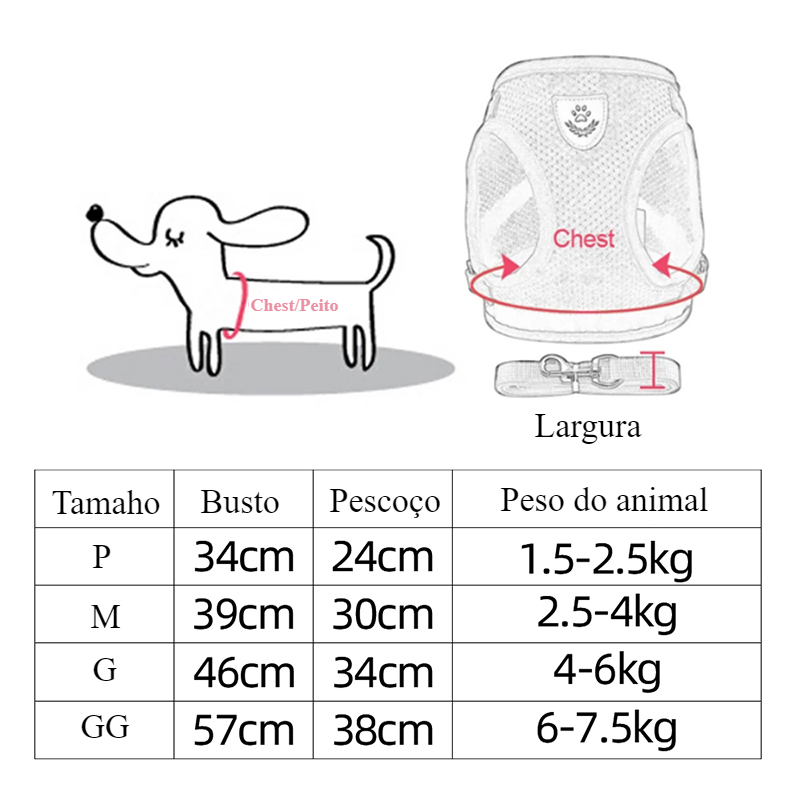 L Busto: 44cm-54cm Pescoço: 34cm Peso de referência 4-6 kg,